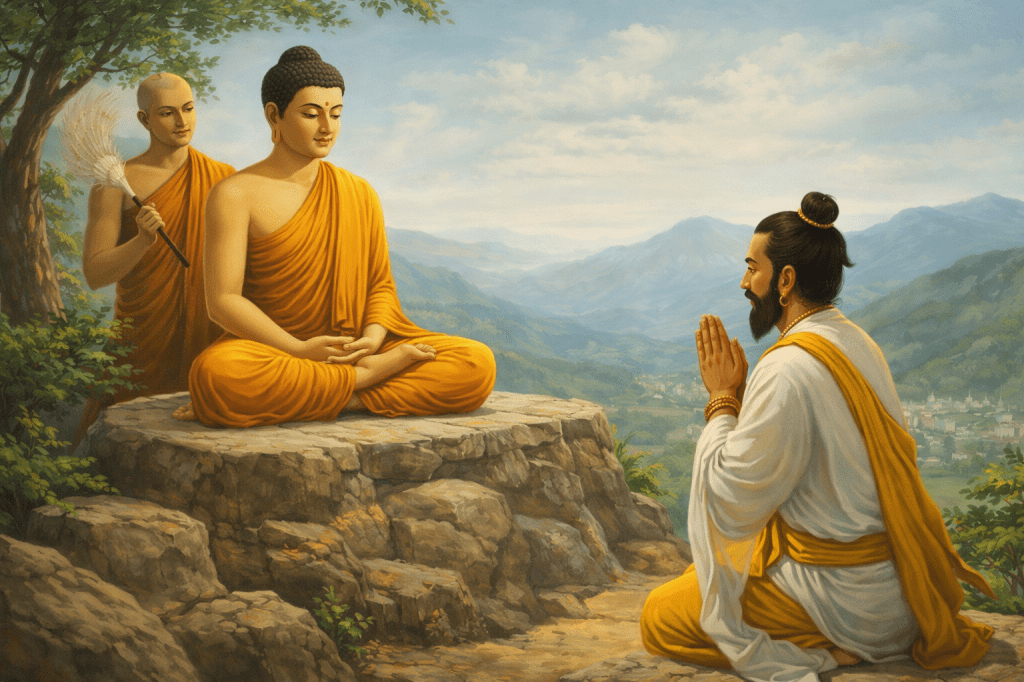 Нэгэн цагт Бурхан Багш Ражигахад, “Тас цогцолсон оргил” уулын ойролцоо саатан байлаа. Тэр үед Видеха гүнжийн хүү, Магада улсын хаан Ажатсатту Важжичууд руу довтлохоор санаархан: “Би энэ их хүчирхэг Важжичуудыг довтолж бүрмөсөн сөнөөн дарж, сүйрсэн балгас болгоно” хэмээн машид их хилэгнэж байв.